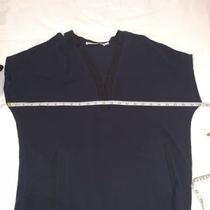 Used once, ASTR the label navy blue with black neck detail, tunic/dress that measures 35inches from top to bottom, front is approximately two inches shorter than the back. Cute paired with booties and a Jean jacket