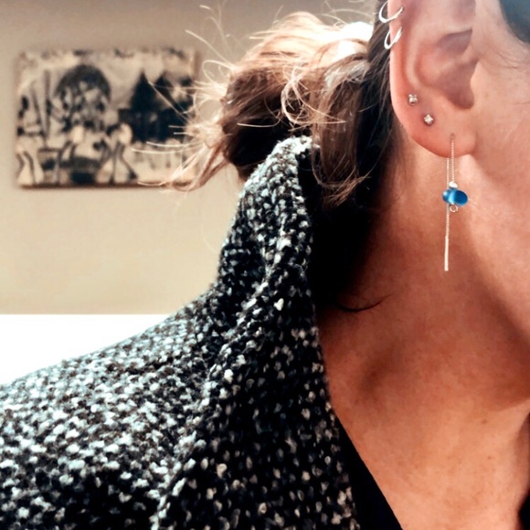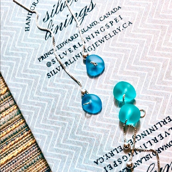 Sterling silver threaded earrings with PEI sea glass. These threaders are super versatile and can be worn in one or two earring holes.