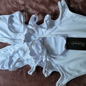 New With Tags Frederick's of Hollywood South Beach One-piece Lace-up Swimsuit, Size S. Turn up the heat in this super sexy skin-baring one-piece swimsuit featuring flattering plunge neckline, seductive straps that wrap around the body, crossover straps, tie-up details at back, cheeky rear coverage. Perfect for lounging poolside with your favorite sunglasses & sandals, or out in the surf & sun!