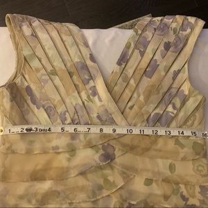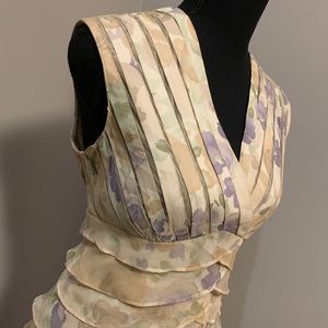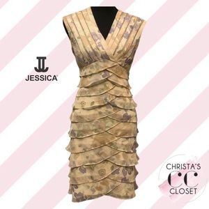Channel your inner elegance in this gorgeous midi dress designed by Jessica. The multilayer midi dress is fashioned from a chiffon material which flows beautifully with movement. Crossover neckline, sleeveless straps, and empire waist add that extra touch of elegance. Worn 1-2 times, new condition.