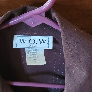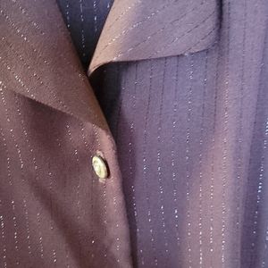 Like New Womens Blouse.Brown with very thin siver glittery stripes.Loose Fit.Pretty gold buttons with gemstone in middle of each one.Sleeves cuff up at end with these buttons too.Smoke Free Home.