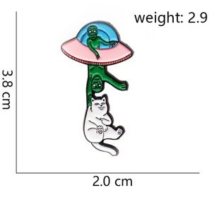 Funny Space Cat Alien Enamel Pin Astronomy UFO