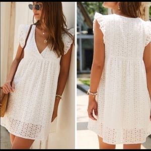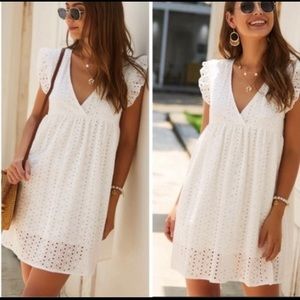Eyelet Embroidery Ruffle Sleeve Smock Dress