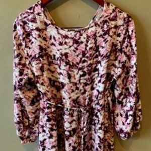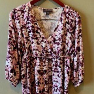 Super Soft Size Large Pea In The Pod burgundy, pink, & white floral maternity shirt with 3/4 length sleeves with a mini button closure & a tie-back. 100% Rayon. Comfortable for home & Stylish for the office. I have other Pea in the Pod items, multiple sizes listed and would be happy to bundle.