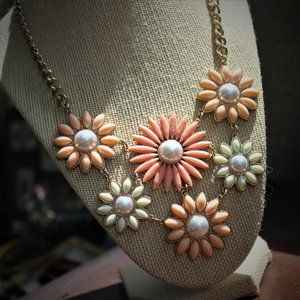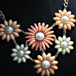 Warm weather is here and this necklace is perfect. The pretty peach tones with cream on the petals with lovely pearl centers.