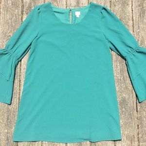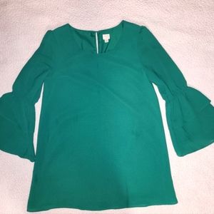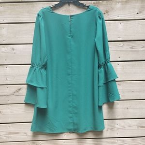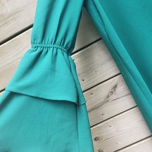 Beautiful Bohol Style Midi Dress With Gorgeous Ruffled Bell Sleeves 😍 Stunning Rich Green Color . Size Large . Excellent Condition !