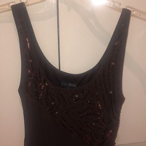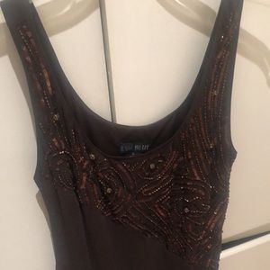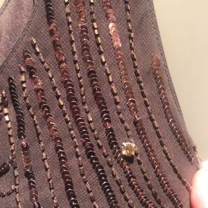 Brown dress with beautiful sequined design and brown rhinestones on front. The back is plain brown. Worn only once.