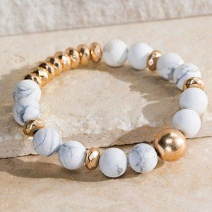 Howlite Natural Stone & Metallic Stretch Bracelet