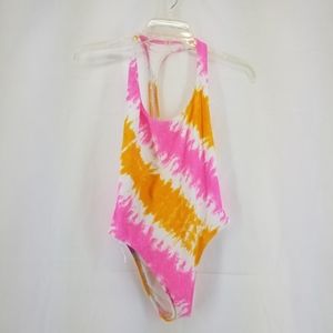 AERIE Pink Yellow Tie Dye T-Back 1 Piece Swimsuit