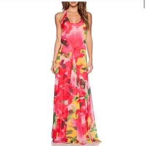 ⭐️ HOST PICK ⭐️ Bb Dakota brand. Sold at lulus. Size small. Deklyn style name. Color bright magenta fuchsia pink with multicolor yellow white green floral print. Woven poly chiffon. Abstract flower print. Sleeveless racer back bodice. Scoop neck. Elegant godets add texture and shape and layer to the full floor length maxi skirt. Home side zipper. Fully lined. Stunning. Stand out style dress. Glamorous moves beautifully. Perfect for spring or summer wedding. Sold out at Lulus formal dress. Evening gown. Prom. Perfect for captains dinner wedding engagement photo shoot. Gorgeous stand out dress. Tropical Prom. Easter. Spring break. Gala. Holiday party. Homecoming. Formal maxi gown.