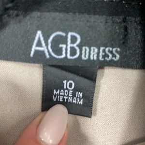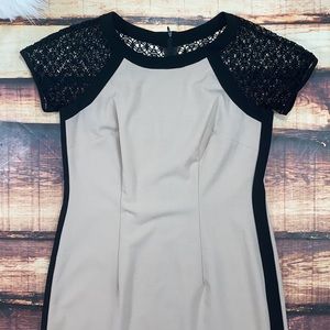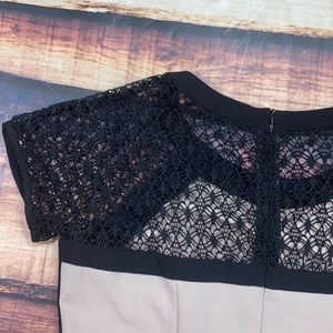 AGB Tan Nude Black Lace Sleeves Dress