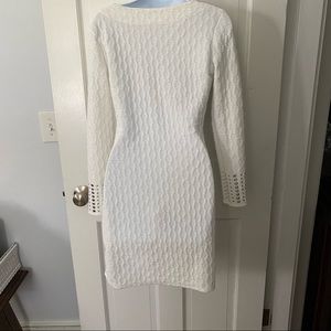 Super cute & sexy long sleeve white dress detailed with silver at the collar and cuffs.