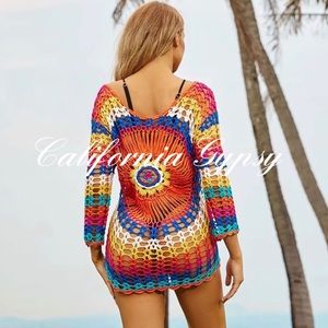 New rainbow bohemian knit coverup. This is so beautiful!π€© Sizes listed will fit measurements bust 34 - 39 inches, and length 23 inches. For more hippie boho gypsy clothing, accessories, and jewelry check out my closet. Bundle and save on shipping plus get an additional discount. π The more you bundle, the more you save!
