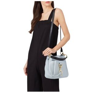A belted bucket silhouette crafted from luxe leather defines this day-to-night style by See by Chloe.