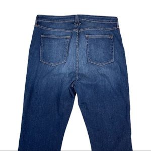 Good American Good Straight High Rise Stripe 24. Gap proof contoured waist band perfects the fit of straight-leg jeans cut from curve sculpting stretch denim highlighted with athletic stripes, distressing, fading and raw hem. See photos. I love this brand, all their jeans feel like comfy jeans you’ve had forever that you just pulled from your closet. Cotton/Poly/Elastane Machine wash. Very stretchy.
