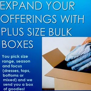Plus size, good brands, not thrift store stuff. I am doing a closet clean out and giving you the deal of a century! For one low price I will send you 10 pounds of clothes, or no less than 7 items. I will pack listed items and many more that are not listed. You tell me the season, size and type you want and I will send you a box. Happy poshing!