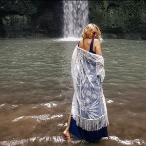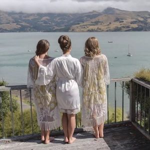 SOLD OUT Boho Embroidered Sheer Lace Kimono Wrap Robe