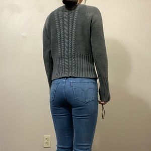 Cable knit and ribbed design / has some stretch