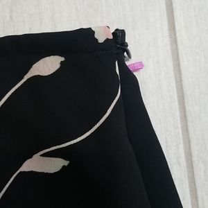 Beautiful floral ruffle hem black midi pencil skirt with pink and white flowers and green leaves pattern. Custom made, one of a kind, unique. Fully lined to ruffle hem. Ruffle hem is slightly sheer and looks gorgeous.