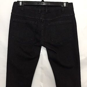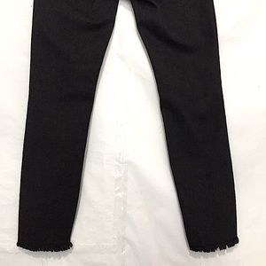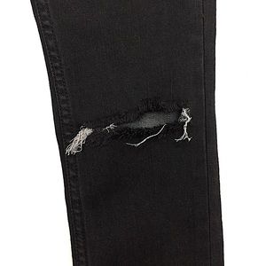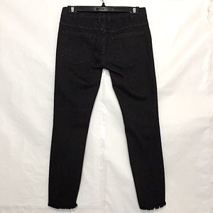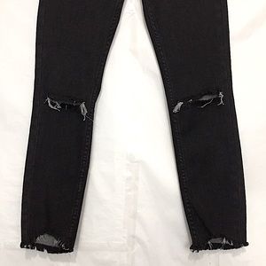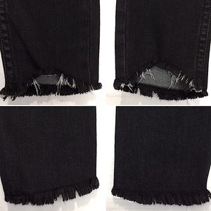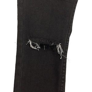 Black faded wash busted knee distressed raw hem skinny jeans, jean has never been hem or alter, preowned in good gently used clean condition.