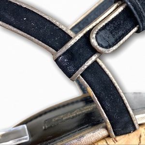 Dolce & Gabbana Black Velvet Metallic Gold Leather Trim Cross Strap Cork Platform Sandals