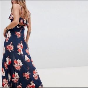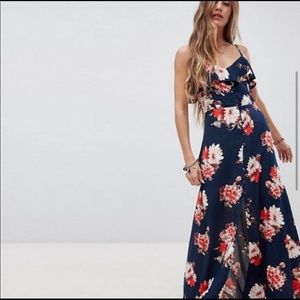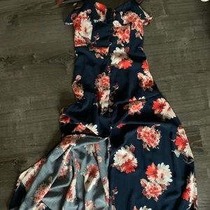 WORN ONCE. It is SO ROMANTIC! It buttons all the way down the front, with a ruffle right across your chest. Dainty straps + 3/4th slit for a truly classy MAXI!! Little opening in back for peekaboo