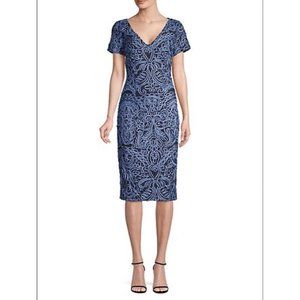 Wedding event party formal gala bridal bridesmaid mother of the bride mother of the groom women’s blue lace floral gown summer spring cocktail party