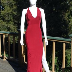 Tank top maxi dress for semi-formal/formal events. Bodycon dress with deep v-neck design in front. Ideal for a nighttime event, birthday, or prom! Pair it with some strappy heels or stilettos. Racerback strap detail on back.