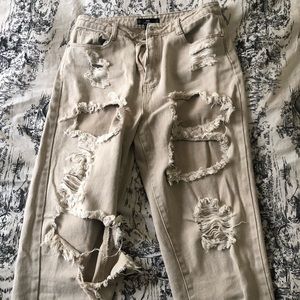 •high waisted, 5 pockets, belt loops, and heavy distressing