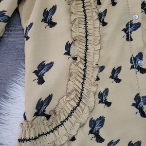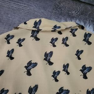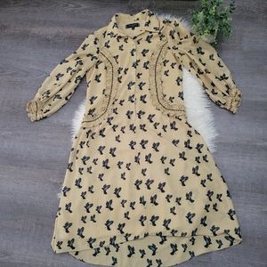 Set your dress roster to fabulous new heights with this charming bird print piece from Max Studio.