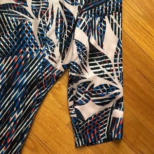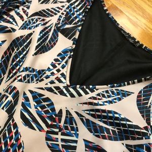 Hi-low dress with 3/4 length sleeves, 100% polyester with a black polyester lining. Very comfortable and light weight. Worn once, no tears or fading. Excellent condition.