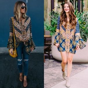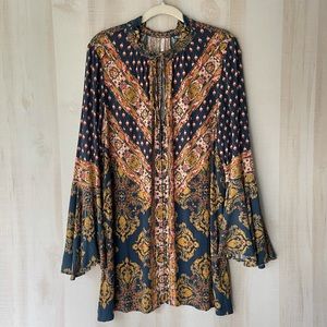 • boho bohemian hippie hippy mini dress flowy free bell rare