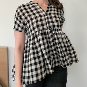 Gently used, great condition. The very definition of effortless, this swingy gingham top creates a flattering silhouette thanks to a spot-on, waist-defining empire seam. Christina, our customer styling director, loves the way it pairs with crisp white denim and is already working it into her fall wardrobe.