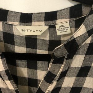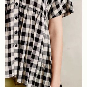 Anthro Tylho Checked Swing Top Gingham Linen Plaid Blouse Shirt Summer Linen S