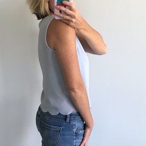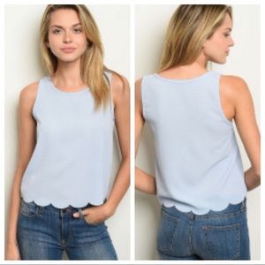 Blue Scallop Hem Tank. Fabulous wardrobe staple. Lightweight. Wear alone or under a jacket or cardigan. Sleeveless. 97 polyester 3 spandex. New boutique item.