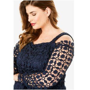 Roaman's Lace Overlay Cold Shoulder Midi Dress