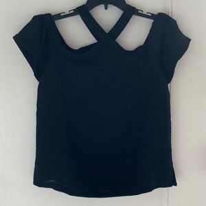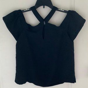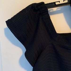 Size XS. Textured fabric; lined w/sheer sleeves. Side slits. Peephole buttoned back. NWOT-perfect condition.