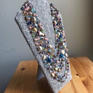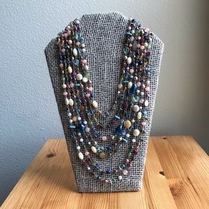 7 Strand Genuine Mother Pearl Cats Eye Necklace