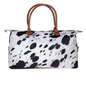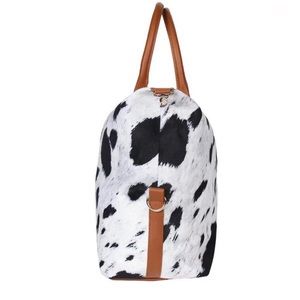 Cow Hide Print Weekender Faux Leather Travel Bag