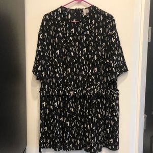 Preloved ASOS DESIGN mini smock dress with frill waist in splodge print. Size US 8/ UK 12.