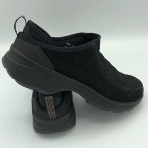 Features: Leather and fabric uppers, man made sole