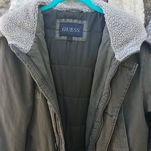 Guess zip up ong jacket with hood.