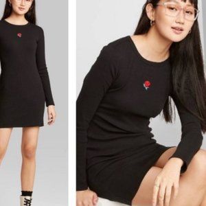 Bodycon Dress Long Sleeve Wild Fable Women's Black Embroidered Size S