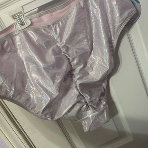 New with sanitary liner. Cheeky bottom with ruched back. Last picture is to show how they back looks on.
