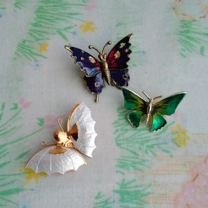 🌙🦋Vintage Butterfly Pin Trio