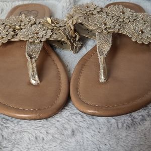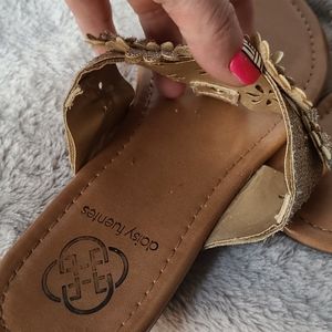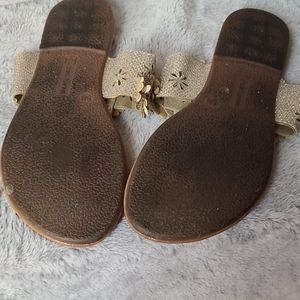 Separation on band and I cut the strap that use to be on the back. Still super cute and functional. Good sole.