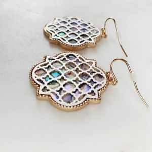 1 1/4" dangle abalone inset in a morrocan filigree metal