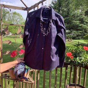 Navy blue classic button down blouse. Lands’ End, worn once, no blemishes or imperfections. Necklace not included.