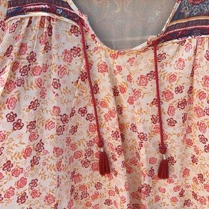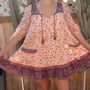 Free people dress short sleeves with pockets peach red paisley print