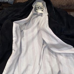 The jacket has been worn, not any longer and was kept in a cedar closet . Our home is Clean, Smoke and Pet Free